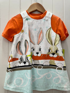 Rabbit Border/White with Orange Grey Floral Reversable Dress #654
