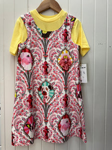 Red, Pink, White with Framed Dogs/Multi Stripe Reversable Dress #673