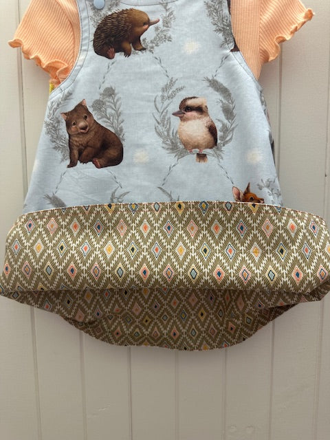 2yr Light blue animals/colour diamonds REVERSABLE Dress