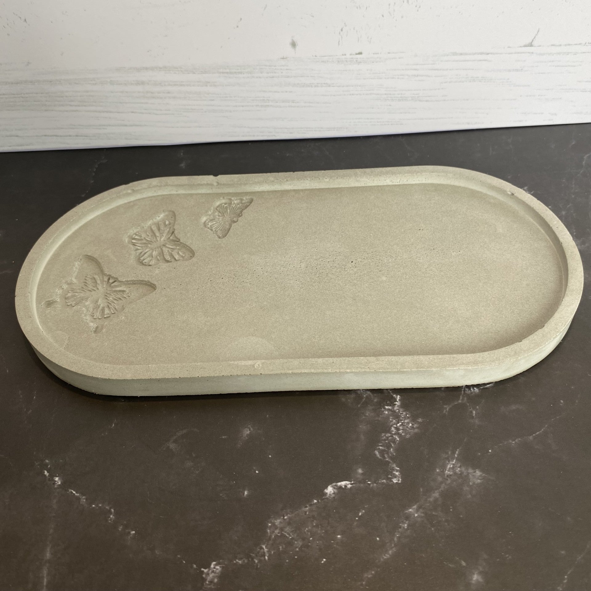 Handmade with cement and sealed, perfect for stand alone candles. This tray can also be used for keeping little trinkets safe, such as jewelry.