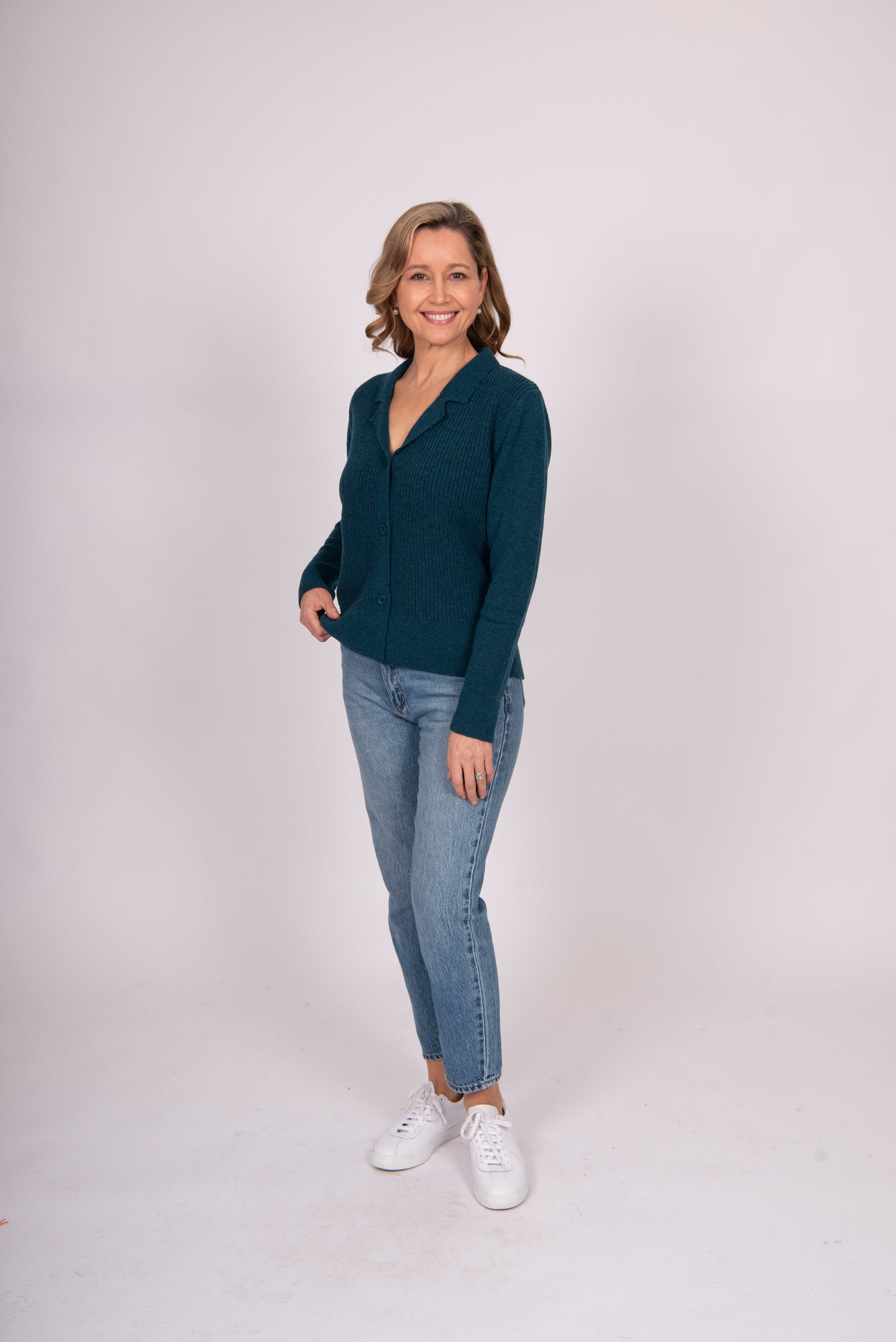 Collared Fisherman's Ribbed Cardi TEAL